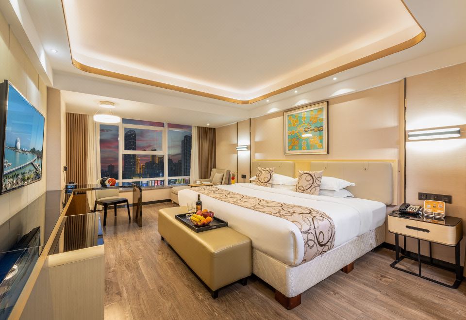 酒店位于珠海市拱北迎宾南路,坐落于拱北繁华商业地段,珠海有富盛名的酒吧街、情侣路、圆明新园、梦幻水城、摩尔广场、愚园、华发商都、富华里近在咫尺,离拱北口岸更是举步之遥。酒店距离珠海长隆海洋王国约30分钟车程,便利的水陆交通可轻松抵达九洲港、轻轨站、珠海机场、香港、澳门以及珠江三角洲各大城市,交通便捷。 酒店客房宽敞舒适,设有客房两百余间,房间配备有50寸平面液晶电视,无线Wi-Fi全酒店覆盖。集聚住宿、会议、餐饮、娱乐于一体,内设大型停车场,周边餐饮娱乐设施齐全,地理位置优越,是商务旅行和休闲度假的优选之地。