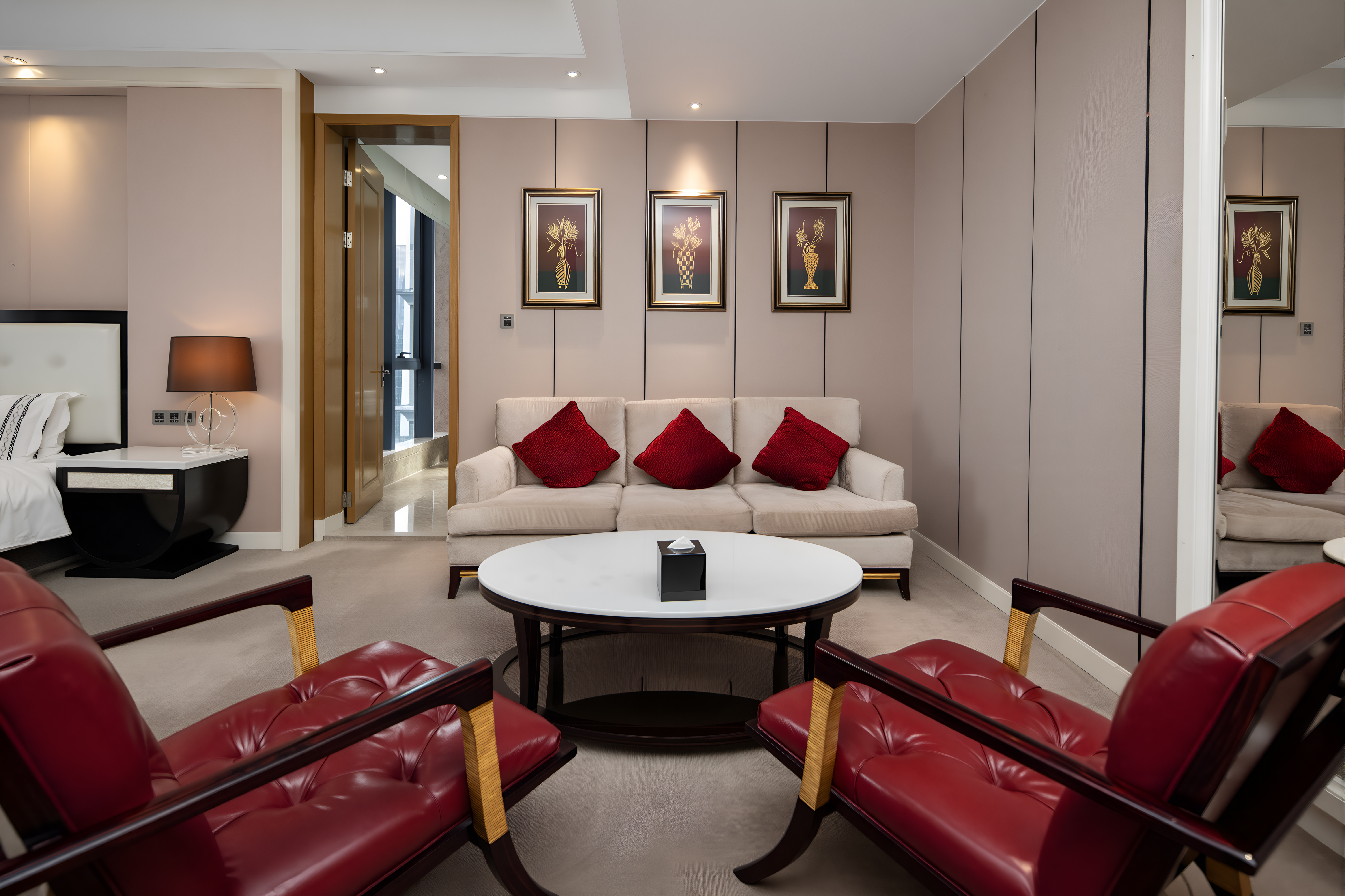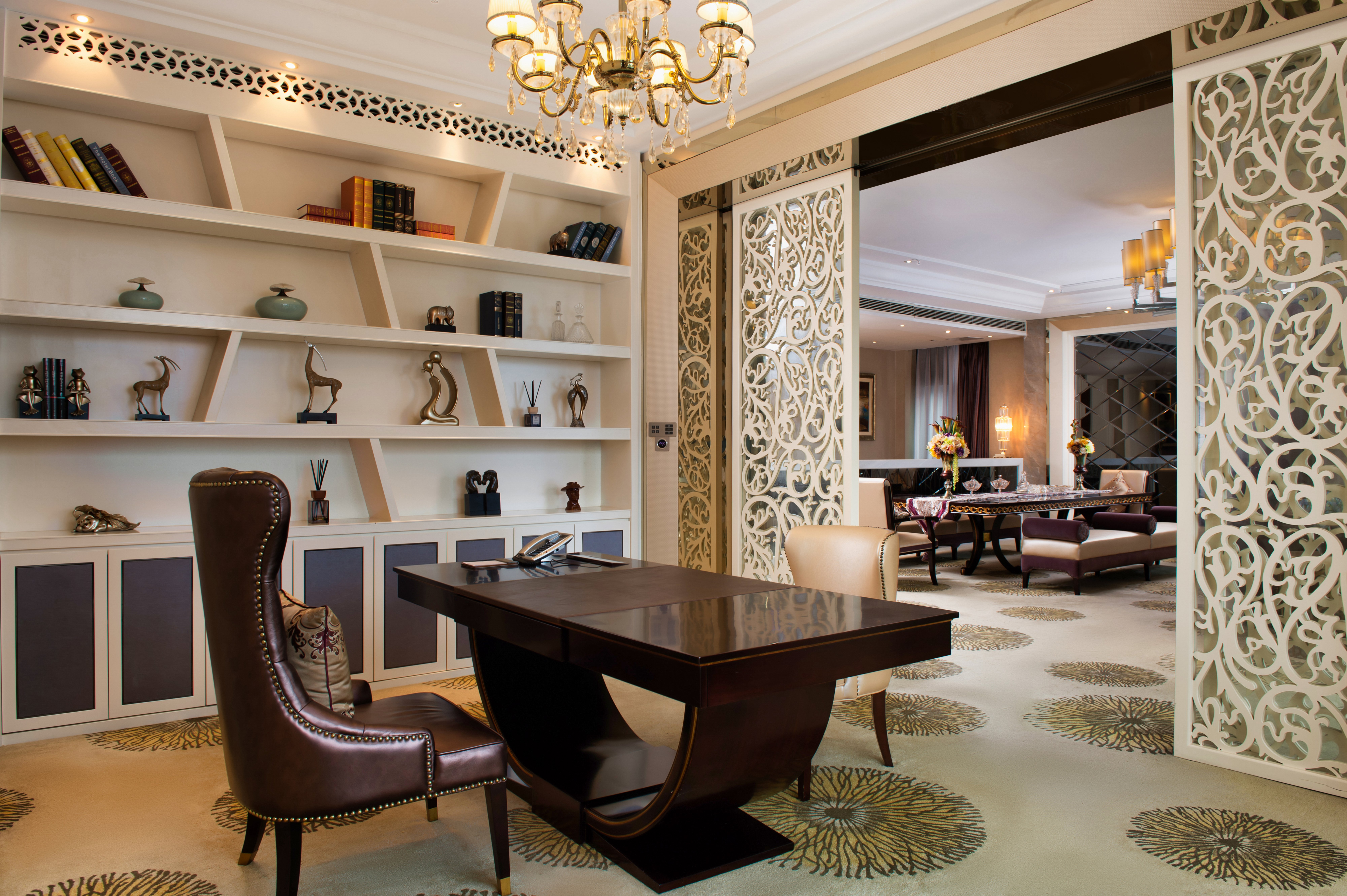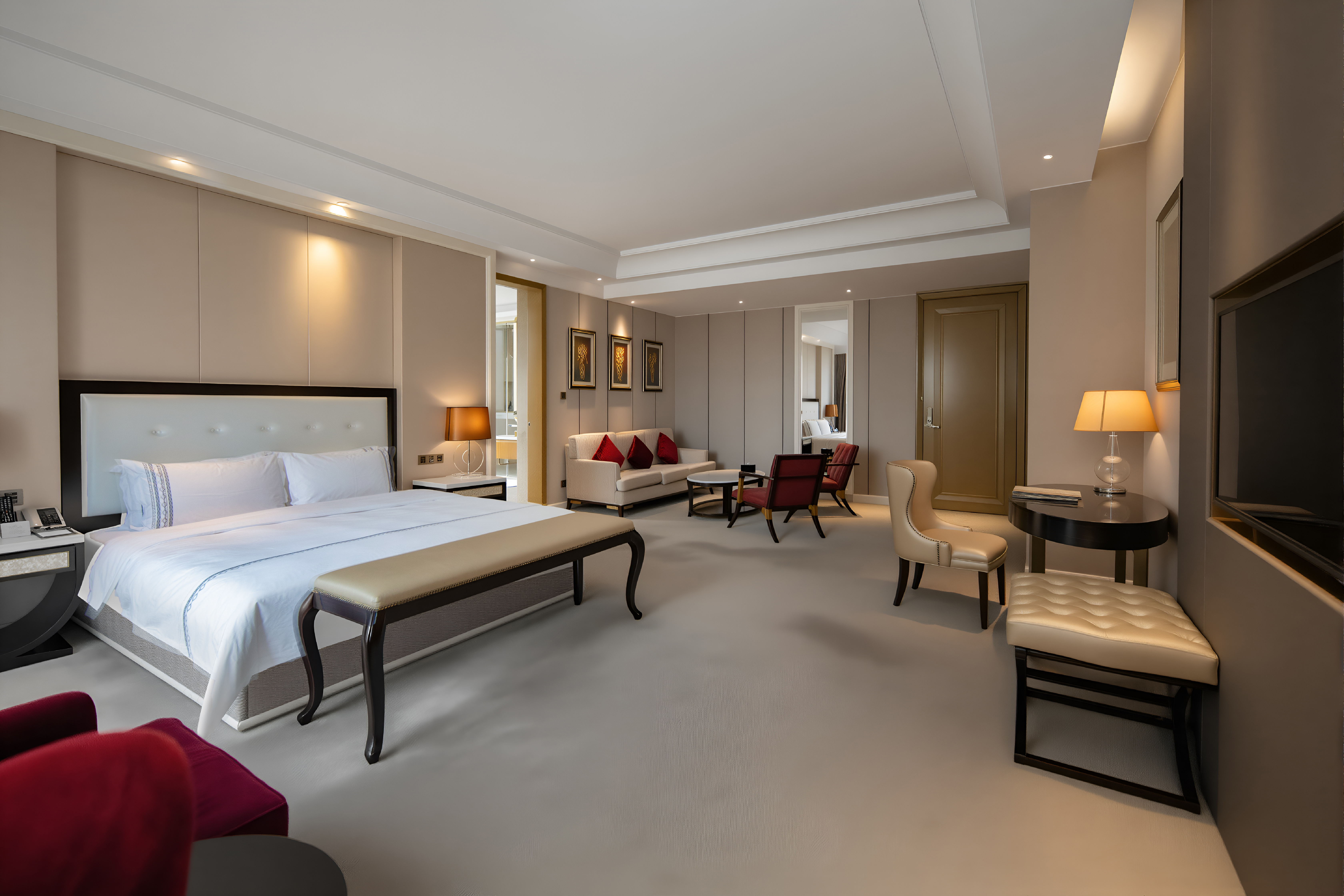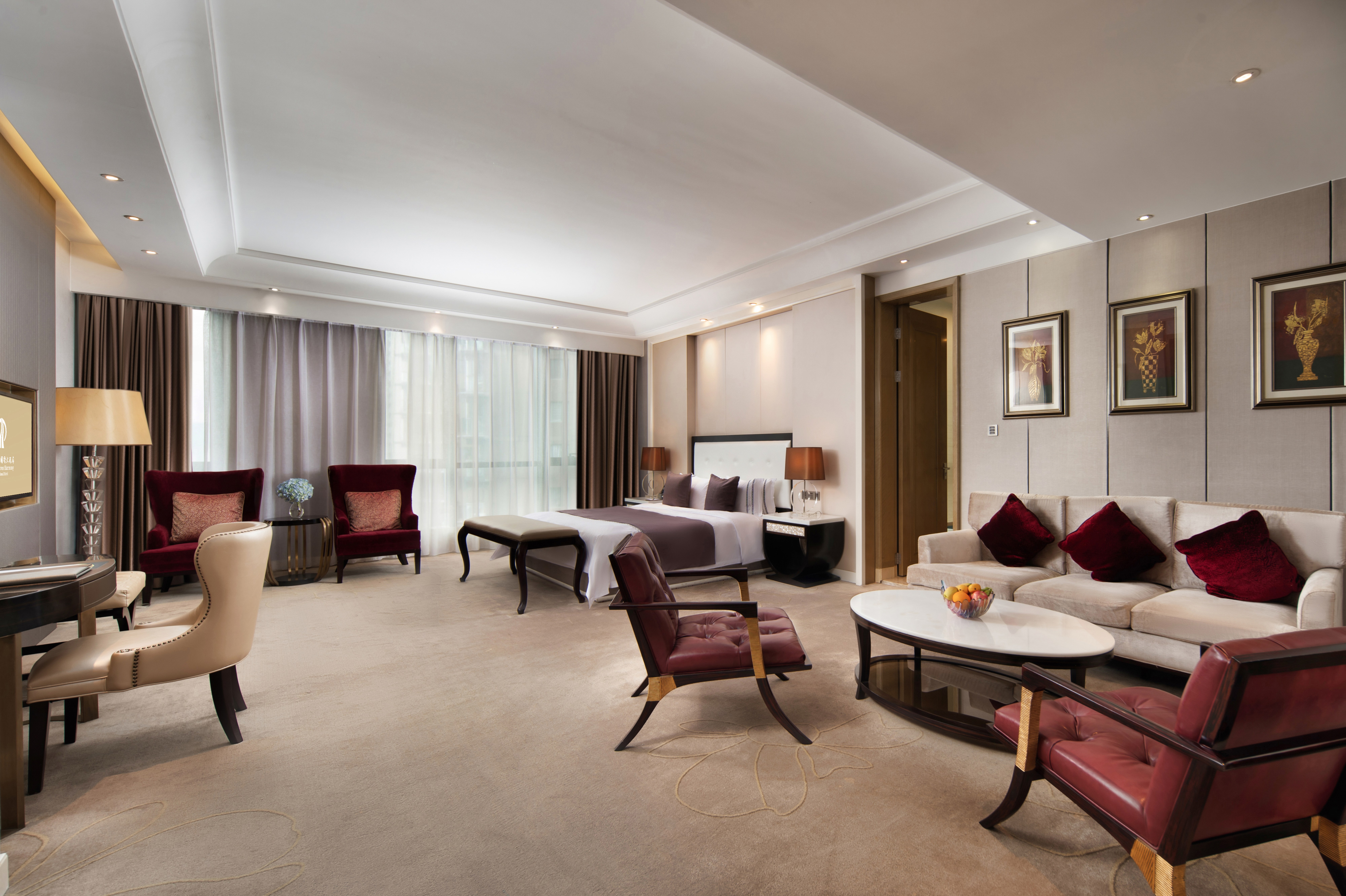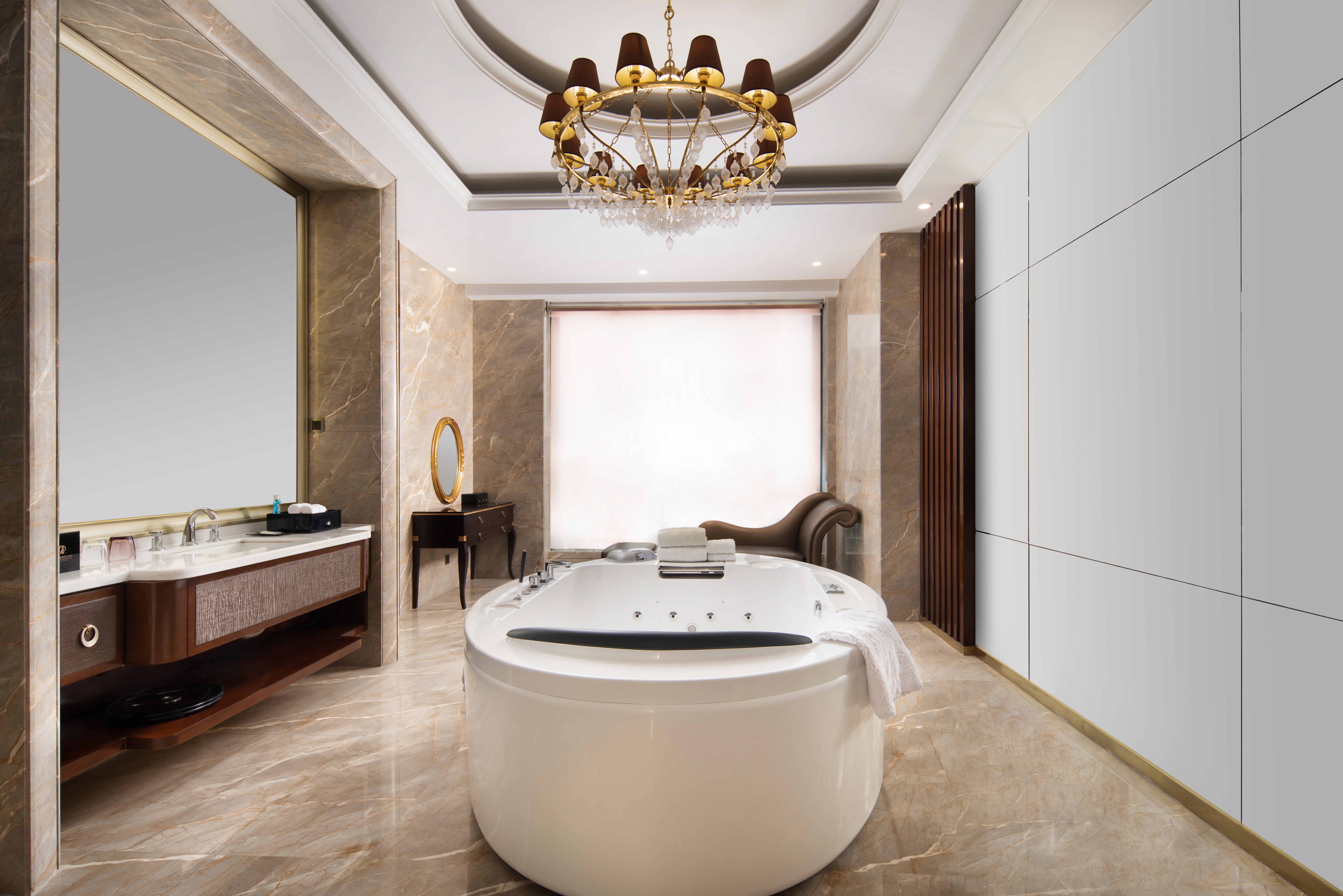 豪华套房-一房一厅会客厅-办公区-深泡浴缸-全景落地窗