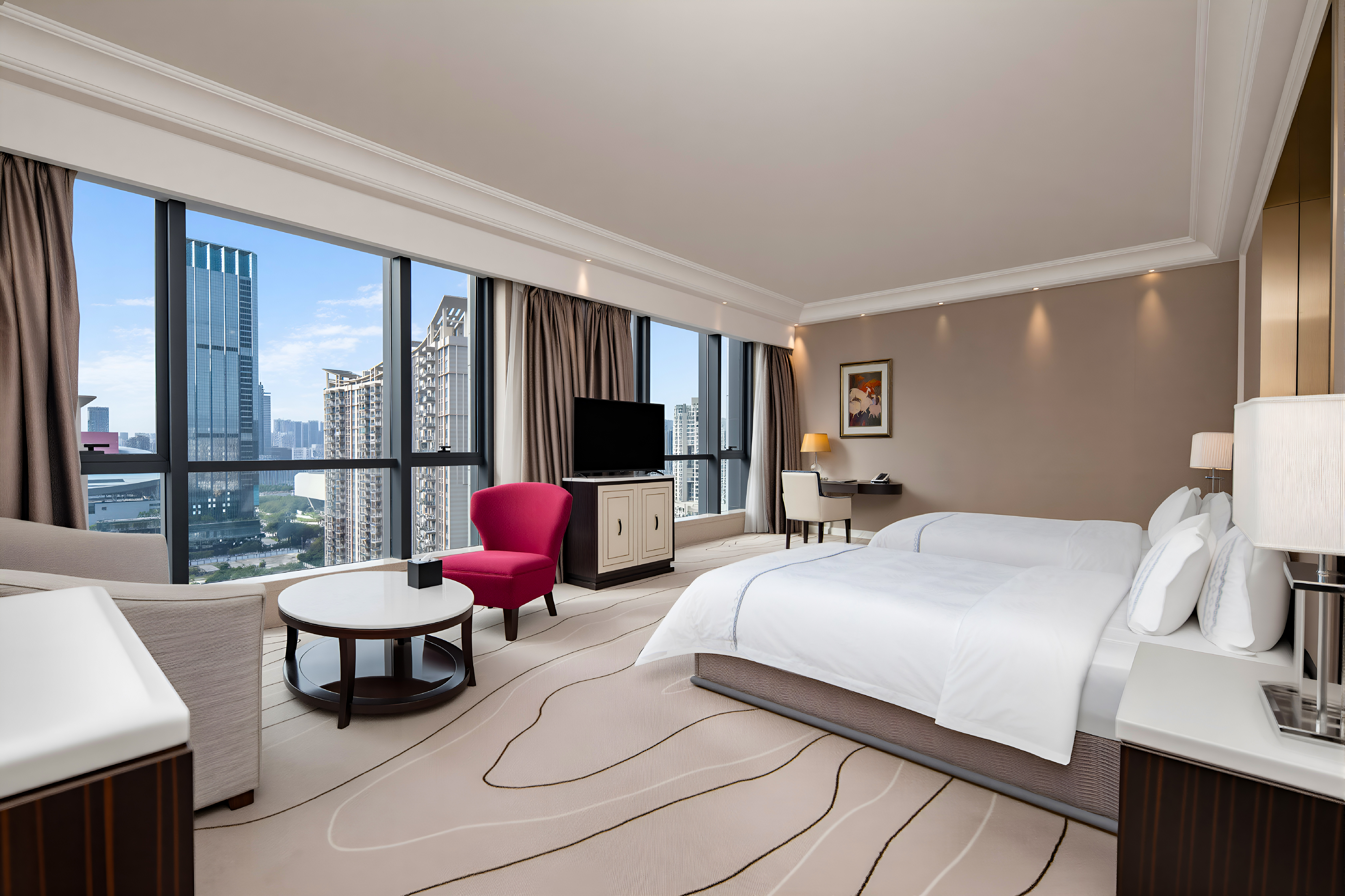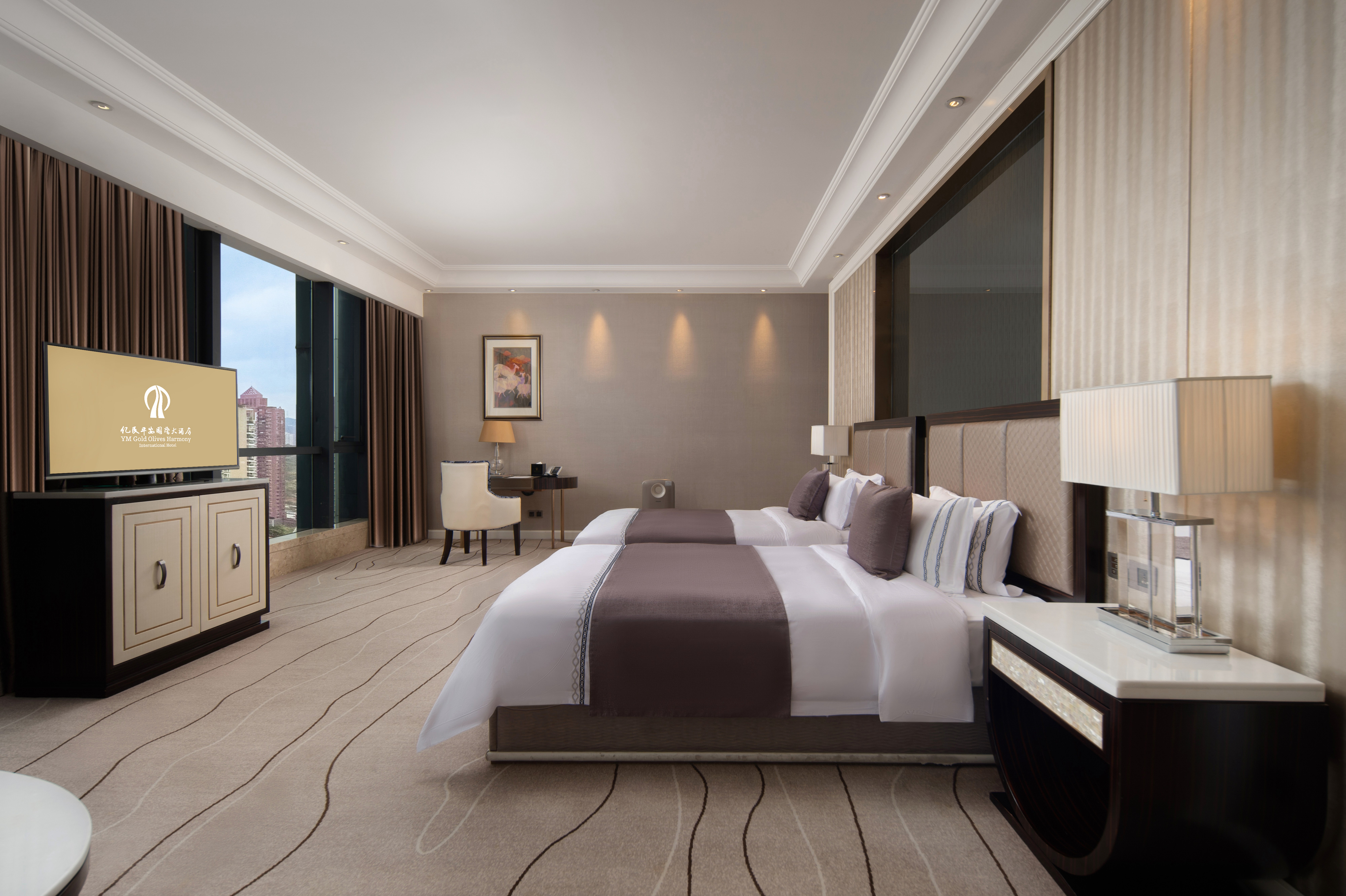 尊尚豪华双床房-全景落地窗-超大浴室-深泡浴缸