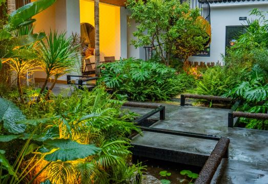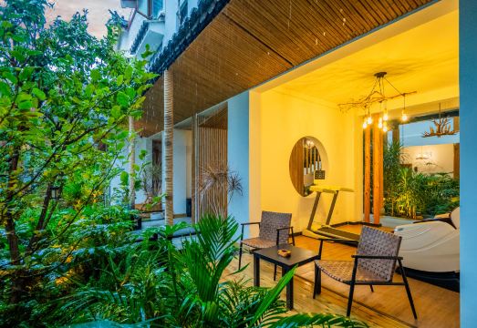 这座庭院以彝族传统「四合五天井」为韵脚,以「走马转角楼」为诗行,在檐角廊柱间编织现代美学。回廊三叠,引光入画,草木在砖缝里生长成诗,一池活水倒映天光云影,恍若将整座苍山洱海的灵秀凝于方寸。中庭的书房收藏着时光的私语,健身房流淌着晨曦的韵律,天台酒吧盛满星光的杯盏,更有半亩方塘倒映云影天光,邀您以茶代酒,与明月对酌。