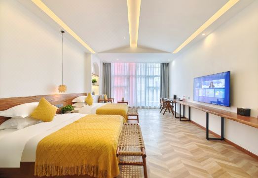 我们酒店是呈悦集团旗下一家极具特色创意,奢华大气的城市民宿酒店。房间床上用品全部采用纯棉床品,零压床垫给您带来深度的睡眠体验,全智能设施。列如(小度智能音箱)小度帮我打开电视,窗帘,空调,开灯,关灯,等等一些列特色创意的设施。汤池房,浴缸房,给您带来一种全新的,宁静的,舒适的休憩空间以及环境。我们用心为您的到来做最充分的准备,欢迎贵宾您的到来。期待与您在这里结缘和邂逅。
