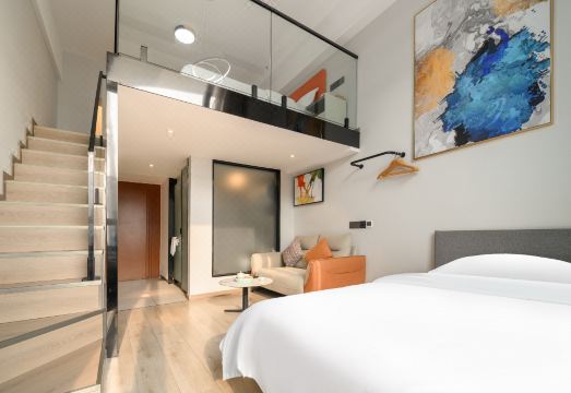 住在这,去哪都方便! 酒店地处成都核心地段,楼下即是2号线牛市口站C口,交通便利,出行方便,酒店毗邻春熙路太古里,九眼桥、坐拥环贸ICD、华润万象城、逛街shoping、餐饮、娱乐一应俱全,闹中取静,别具一格。距离成都东站3.8公里,约10分钟车程,双流国际机场17.3公里,约25分钟车程,众多景点,尽情玩赏。 在这里呈现的是居住、工作无边界的城市概念生活体验,这一切都是最棒的安排! 落地窗LOFT设计,无敌视野,卫生间干湿分区,房间配备大尺寸电视和百寸影音设备、感受智能家居全覆盖带来的科技便捷体验(自动开关灯,窗帘,空调,电视) 梦百合床垫、高档洗漱用品、洗衣机、冰箱、棋牌房、 严格的管理体系让您每-一次都能安心入住!