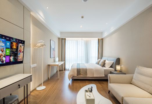公寓位于锦兴路佳兆业天悦,四川省川剧院旁,临近地铁1号线锦江宾馆,毗邻春熙路、太古里、天府广场商圈核心地段。公寓房间风格按照轻奢凤打造,适合旅游休闲,家庭聚会等。