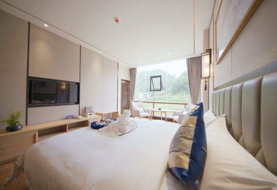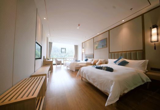 酒店拥有“江景双”、“江景单”、“麻将单”、“江景豪套“4种房型,每间房间面积40-80平米,内部装饰和设施设备完善。酒店内设大小两个会议室,配有高端品质的音响、视频设备,大会议室可容纳200余人开会和听讲座。1个精品中西餐厅,可私人订制宴会,7个中式包厢,古韵与科技结合,餐厅与包厢可供300人入席余。吃住在这里,既可一览穿岩山的山水风光,又可体验感悟神奇花瑶文化和美食。