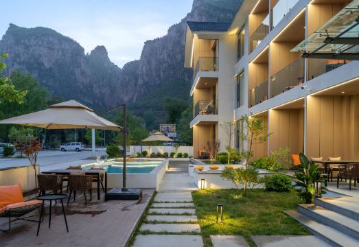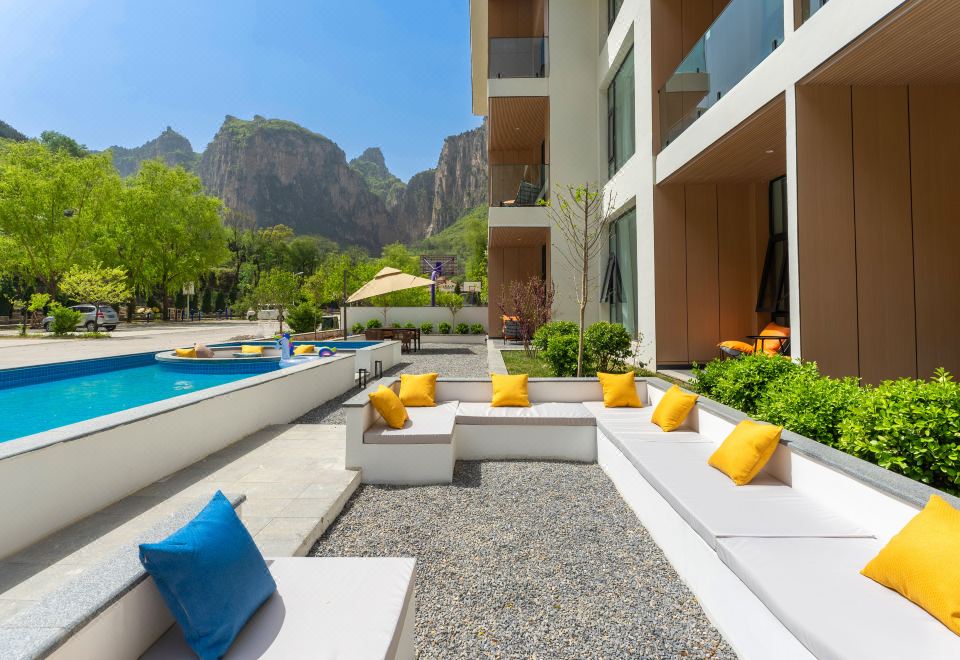 本店座落于山西太行山大峡谷景区内,交通便利。依山傍水,周边环境非常优美静谧,酒店拥有风情庭院,小童泳池,全屋智能,配套齐全,wifi,智能液晶电视,24小时热水淋浴,每个房间标配超大观景露天阳台供您观赏山景!配套有自动麻将桌,天幕烧烤,满足您休闲,旅游,度假的入住需求。本店也会一如既往,保持初心,竭诚为您提供便利贴心的服务,让您在酒店感受到温馨与舒适!“我见青山多妩媚,料青山见我应如是”。白茶清欢无别事,我在等风,也在等你!