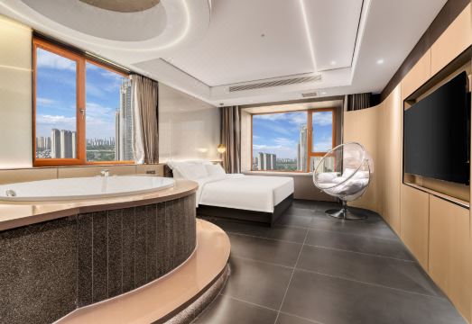 我们的客房采用现代化的设计理念,房间带有浴缸和高空观景,让你可以尽情欣赏城市的美景,享受超然的感觉。在这里,你可以感受到不同寻常的入住体验,也能够尽情放松身心,享受一段难忘的旅行时光。