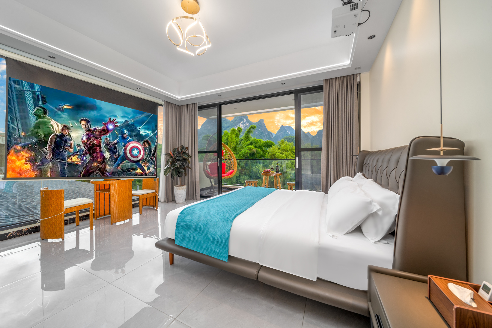 阳朔水墨东漓酒店是一家休闲型亲子类酒店,坐落于兴坪古镇,交通方便,闹中取静。与甲天下的漓江相依、有1700多年历史的兴坪古镇相伴,静谧中带有不平凡的浪漫。 民宿临漓江而建,每间房打开窗帘都是一副山水画,拥有宽阔的视角可饱览桂林山水美景。民宿采用的是德国高端美得丽品牌Musterring,星级床品,致力于为您带来更好的睡眠体验。卫生间使用的是箭牌智能卫浴,及全屋智能灯光,满足您需要的不同场景的氛围感。民宿可提供当地特色、川菜等美食,让您既能享受当地特色,也能拥有多种选择。楼顶设有230平米露天观景台,可品茶、吃自助烧烤、观日出、赏日落、星空房里数星星看月亮,让您足不出户在酒店即可欣赏兴坪美景。酒店内外设有高清监控,配备停车位,方便您的出行。民宿热忱欢迎您的到来!