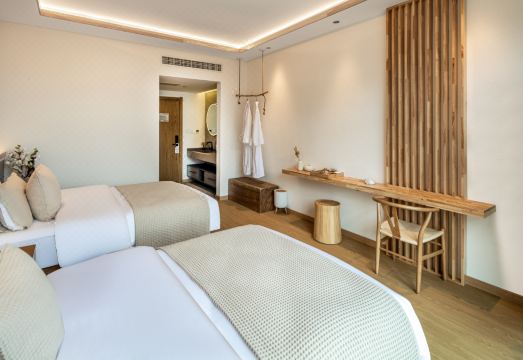 民宿坐落在五台山风景名胜区竹林寺村,依山而建,大圣竹林寺步行可达,龙泉寺、广化寺、殊像寺、五爷庙均在13分钟车程之内,得天独厚的地理位置呼应着每一颗虔诚的心。民宿由莲住品牌专业设计团队历时一年精心打造,一室一景,观山赏月,解放身心。鹅绒被、鹅绒枕、零级静音床垫,让您在虔诚礼佛的一天结束后,以最放松的身体、最舒畅的心情入眠。房间接引鲜活水源,可直接饮用,还有定制大红袍、水仙等您品味香茗。房间设施配套齐,24小时热水、24小时暖气、无线WIFI、独立投影,还能语音控制所有灯光,用智能解放双手。贴心设置的独立空间,供您诵读经书、抄写经书,以静心释放压力。真诚地邀请您——来五台山朝山拜佛。愿您心中有莲,住民宿,闻、思、修。