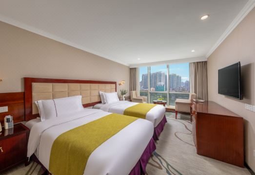 酒店位于珠江边,毗邻珠江夜游起点“天字码头”、酒吧一条街、北京路步行街。酒店距离琶洲国际会展中心及广州火车东站均为6公里,交通便捷。酒店的客房可俯瞰珠江一线江景,并配置语音留言系统、CNN等丰富节目的彩色卫星电视、国际长途直拨电话、私人保险箱、烟雾报警以及的茶冲泡设施。此外酒店还设有各式餐饮、娱乐、会议设施,让您尽享酒店提供的便利生活。