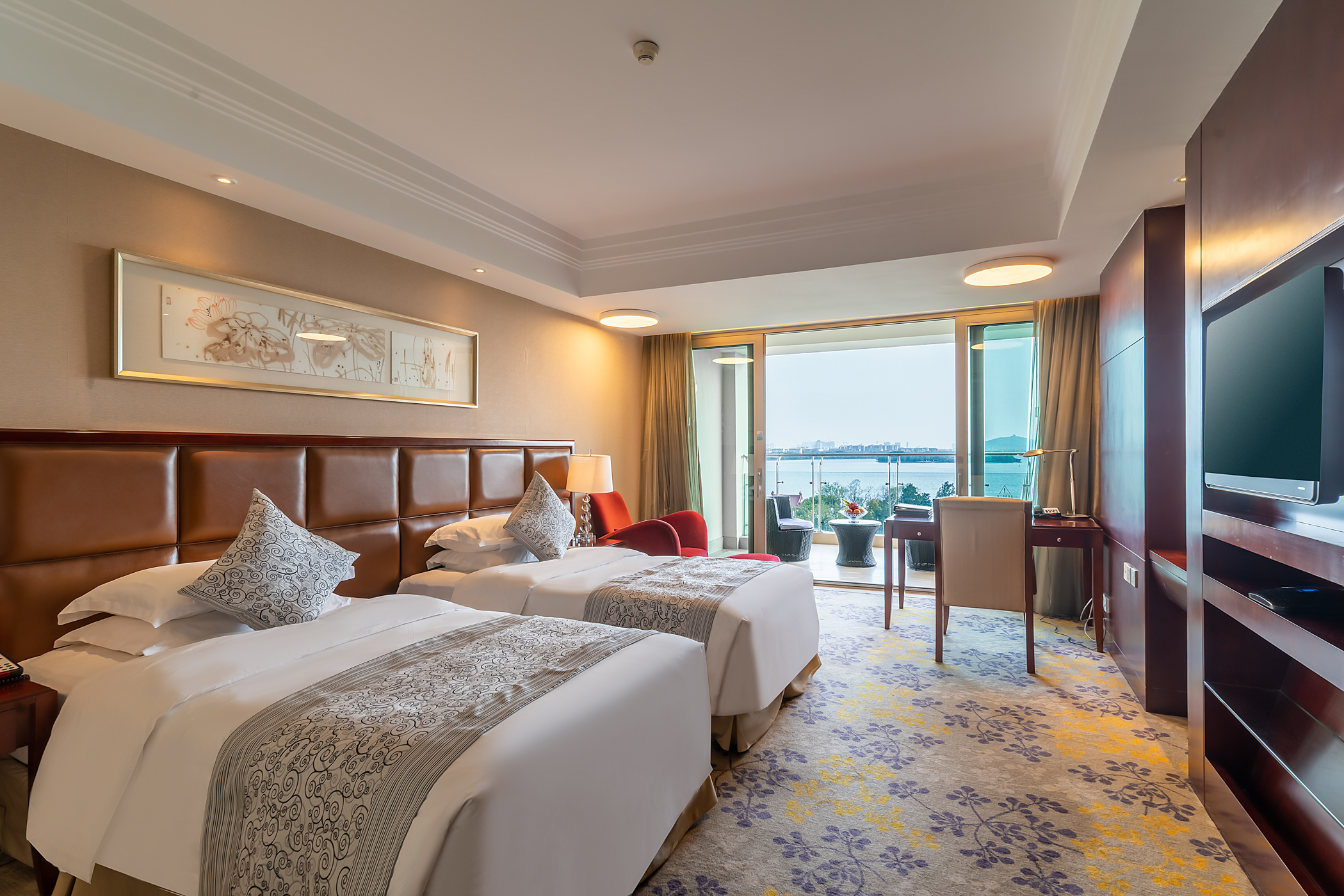 高级湖景阳台双床房——带外阳台,山水共湖光一色