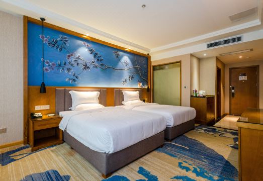 酒店客房设施分布均是从六层到十六层,标准客房、豪华客房、行政套房、特色客房、特色套房等多种不同类型的房间种类,适应不同层次的客人需求。在酒店六楼还设置有一个可容纳100人的会议厅、一个VIP会议厅和一个VIP洽谈室,房内设施完备、先进,有独立Wi-Fi、中央空调、私人浴室、广电及网络电视、迷你吧、国内长途直播电话、先进的会议系统。同时,本酒店,还提供客人所需的复印、邮政快递上门收件服务、文字处理服务等各种商务服务。