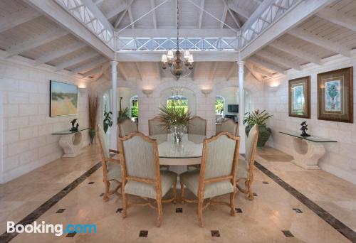 这家空调别墅配有4间卧室、起居室、带冰箱和咖啡机的设施齐全的厨房以及4间带淋浴设施和免费洗浴用品的浴室。4间浴室配有浴缸,也配有吹风机,提供毛巾和床上用品。