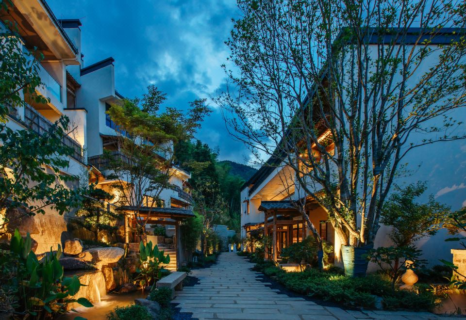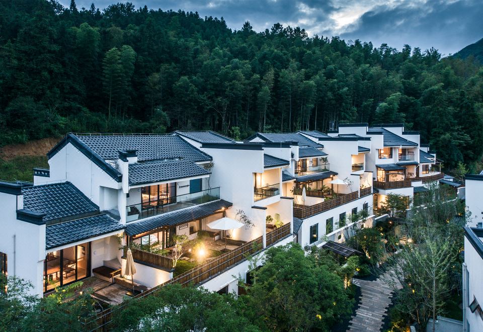 处在休闲度假康养旅游目的地-黄山,位於国家历史文化名城-黟县古城,宏村、西递、南屏、碧山、守拙园、秀里是原始古村落代表,以其独特的徽派建筑、古老的徽州文化、与周边美丽的自然山水风光打鼓岭、五溪山、石林水世界的完美相结合,落址在安徽黄山黟县附近的山野别墅,酒店总面积为64亩,建筑占地面积约为4000平方米。15栋新式徽派园林别墅,37间房间都配备现代化智能管家,设计理念出自无名初酒店的创始人-程熙,靠山麪田、以山水阡陌入景,造园林楼阁隐世。一条蜿蜒的石板小路,连接着院内新式徽派建筑,建筑、森林、稻田倒映在庭院中的景观池之中,给人一种“大道至净”的体验。自然疗愈的旅程,将慢慢感觉到身体与心境微妙的变化。这里的特色在於丰富的活动和体验课程,沉浸式的疗愈让每一位客人更好地体会到自然与生活的美。在这个远离尘嚣的桃花源,告别情绪倦怠,遇见全新的自己