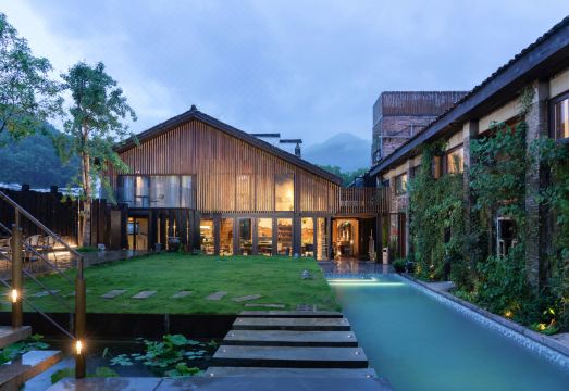 婺源水岸边座落以制墨一村之称的虹关村。由六十年代的废弃老厂房、榨油厂、古樟饭店改造成的,保留着老建筑原有的老墙面和木质构架,不同设计风格的客房让来到水岸边的客人们放慢脚步,回归本真。婺源水岸边内还设立多重功能设施,包含亲子空间、女性空间、室外泳池、影院、书院、咖啡馆、艺术研学空间。