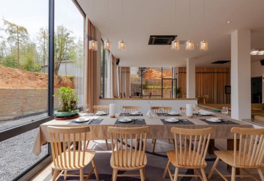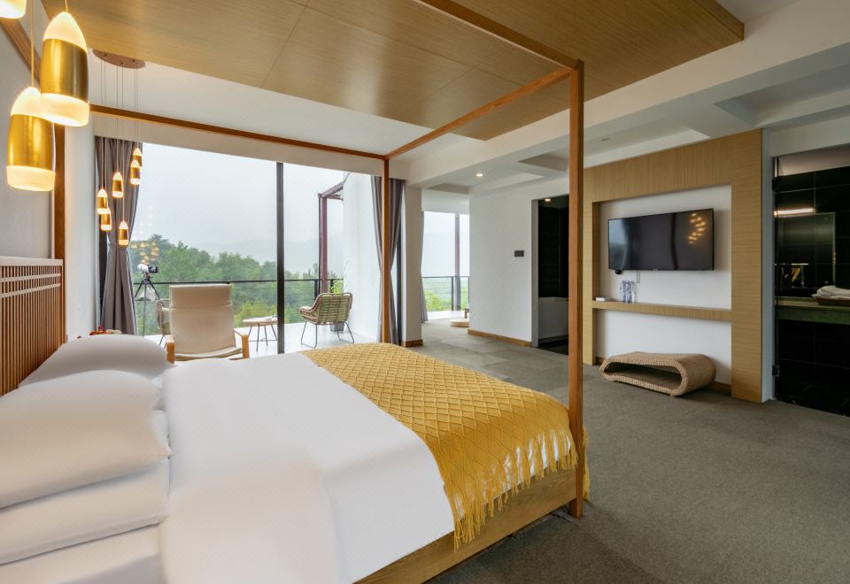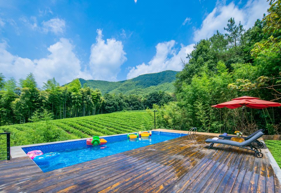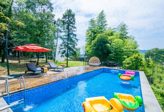 The Nights?莫干山炫彩星空民宿为特牌四钻民宿,总占地面积超7亩,独门独栋半山腰地势,民宿共3栋楼,单间超50平方,全部配置落地玻璃、浴缸和地暖等,最多可支持24张床,有超200平方的室内公区,户外草坪面积超1000平方。公区配置有KTV、小童乐园、桌球、棋牌、茶桌、书吧等,户外配置有泳池、滑草、小型足球场、天幕、帐篷、砂坑、卡丁车、蹦床等,提供自行车和路亚渔具租赁、户外围炉煮茶和烧烤、露天篝火和露天电影等服务。民宿直麪远山、森林,景色优美,或许是您寻觅归属感的地方,在这里可以让你摆脱都市压力的束缚,让疲惫的心灵得到宝贵的歇息机会,更重要的是可以寻找久违的归属感,遇见美的自己。星空露台,幽深小径,纯净的天空,梦幻的远方,繁华之外,安静之上,或栖於村寨,享受原始的淳朴,在美好的时光中,守住心中的那份自然。期待您的来临!