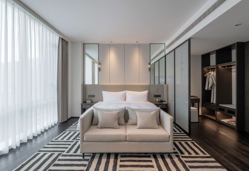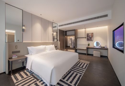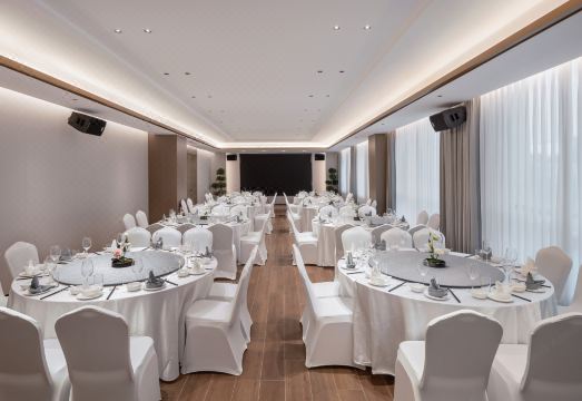 行·交通便利酒店紧邻简阳旭海时代广场、东来印象、大运会场馆,酒店距离天府国际机场仅20分钟车程,距离简阳高铁南站20分钟车程,地理位置优越,出行便利,可轻松到达商业中心及三岔湖、丹景山观景台、龙马湖喷泉公园等旅游景点。住·智慧客房酒店有30-90平米等不同规格的客房拥有舒适、智能的家俬,特设亲子房、观影房、行政套房等多种房型满足不同客户需求,彰显个性服务,酒店配有声控窗帘、智能马桶,智能机器人可独立送物给客户,为每一位宾客提供精心、周到的管家服务,优选洗漱用品及床上用品为您创造优越的睡眠环境,酒店独有的私家停车场,保障您的停车便捷与安全。乐·商务茶舍以中国传统的待客之道,提供独居特色的个性化服务,辅以新颖的商务设施,为商旅客人提供会见、商谈、茶点、休憩的静谧空间。可为您提供20-100人不同类型的会务,助您心想事成!吃·花园餐厅酒店拥有花园餐厅、全日制餐厅、特色包厢等设施,由酒店名厨为您精心挑选无公害、健康食材,烹制菜肴。各具特色、多种风格的美食餐饮,让您享受到至臻的味蕾盛宴。宽敞灵活的就餐空间,为个人或团队提供舒适的用餐场所,是举行定制宴会以及会务的理想场所。