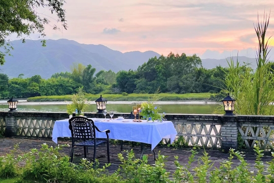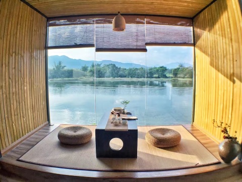 酒店位于深汕合作区凤河流域最美的三江口景区,依山观寨,临水傍居,与五龙峯、古驿道朝夕相伴。抬望间,满目葱翠,竹影摇曳。每当夕阳西下,轻舟绕霞,水天相映,故先贤将此奇景命名为“凤河晚渡”,位列海丰古八景之首。酒店开设了吾舍民宿、露营基地、摄影基地、湛庐茶馆、摄影肖像馆、咖啡馆、烛光家宴、浪漫下午茶等服务项目以及各种私人定制或集体欢聚的主题活动。酒店每套房子各有特色。