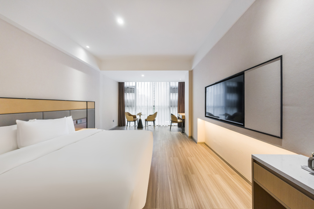 酒店采用品牌连锁酒店设施设备,现代简约风的大气风格。羽绒被芯以及枕头让您疲惫一天的身体得到一个安心舒适的睡眠,智能马桶让您冬天入厕更舒服,机器人送物给您的生活增添不一样的乐趣,酒店距离眉山网红打卡地水街开车仅需要10分钟左右,距离三苏祠开车仅需17分钟,距离眉山湿地公园驾车10分钟左右,春熙步行街一步之遥,距离眉山市人民医院步行3分钟,解决您出行的吃喝玩乐。