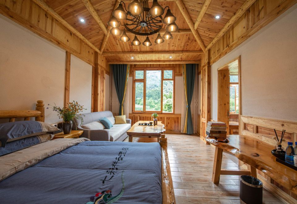 酒店坐落在燕子沟古镇的静谧一侧,酒店周边全是独特的景观,在房间打开窗就能到龙华山、爱德嘉峯,酒店门口就是通往贡嘎雪山、红石公园、雅家情海、大冰瀑布、雅家埂等自然奇观的必经要道,也是秋赏彩林、冬观冰川的起点。 酒店占地10余亩,建筑面积达3000平方米,采用原生态石与木结构,匠心设计和建造,每一处细节都透露着对自然的敬畏与尊重。入住酒店,无微不至的贴心管家般的服务,让您感受到无比温馨与安全,并静享大自然的雄伟和安宁。 酒店客房床品均按照高星级酒店标准精心打造,确保您的休憩时光既舒适又惬意,感受从未有的好质量睡觉。酒店内设施完善,大型停车场、私家小院休闲区、早餐厅、餐饮包间、茶室、棋牌室、多功能会议室等一应俱全,无论是个人休闲度假,还是企业团建、同学聚会、生日派对、求婚仪式,我们都能提供量身定制的服务,让您的每一个瞬间都充满惊喜与感动。 对于热爱运动与自然探索的您,酒店更是户外活动的理想基地,峡谷穿越、登山徒步、赏雪观景,每一次挑战都将成为您生命中难忘的记忆。 在餐饮方面,我们主打本地特色菜肴,绿色有机蔬菜与山间放养的农家土鸡,搭配天然优质山泉水,为您呈现一场味蕾的盛宴。餐厅、餐饮包厢、团队宴会厅、户外烧烤,柴火鸡等多种用餐选择满足您的不同需求。在这里,您可以一边品嚐美食,一边欣赏雪山美景,享受喝茶聊天、休闲就餐的优质体验。 这里,是天然森林氧吧,让您远离城市的喧嚣,回归大自然的怀抱,让心灵得到彻底的放松与净化。在酒店,您将邂逅一场不一样的旅行,收获一份独特的记忆。让我们携手,共赴这场心灵的盛宴,感受大自然的魅力与生活的美好。