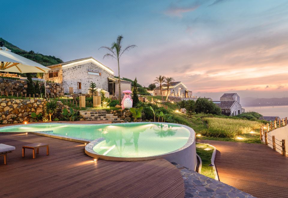 海峡宿集·既见野奢Villa,项目位于平潭,这里有风车旋转,山海相拥,有蔚蓝的大海、绵长的沙滩、古老的石头厝,还有罕见的“蓝眼泪”奇观,每一帧都是自然馈赠的画卷。每一个石头房子装一个小而美的梦平潭独有的石头厝,由花岗岩砌成,宿集既保留了石头厝原始的面貌,又增添了现代的舒适。清晨,阳光从窄窗斜斜地漏进来;夜晚,涛声在厚厚的石墙外轻轻回荡,在这里,旅人能够体验真实的平潭生活。邂逅野趣与萌宠,在PAPAYA营地里,两只羊驼悠闲散步,毛茸茸的身影,为这片海边乐园增添无限童趣。海边婚礼的誓言、艺术展的灵感、旅拍的动人瞬间,团建派对的欢笑,还有野奢晚宴的热闹与欢快,100人以内的定制团建,都可以在PAPAYA营地实现。既见餐厅舌尖上的闽台风味面朝大海的观景餐厅,主打台湾与大陆的融合创意菜,每一口都是大海的馈赠,每一味都是文化的对话。面朝大海,喝杯好咖啡,各色现磨咖啡、沁爽特饮和精致下午茶,任旅人随心挑选。咖啡的醇香与海风的清新交织,每一口都是自在与惬意。多功能会议室可容纳24个人的精品会议室,配备高清投影及幕布设备,在这里,严肃的议题变得生动,创意的火花随海风自然迸发。店内蓝色泳池延伸至海平面尽头,碧水与远天连成一线,躺在池畔,身体浸在清凉中,眼前是无垠的蔚蓝,彷佛漂浮在海中央,与自然融为一体。探访神秘的山顶古村落,去触摸与世隔离的慢时光。山海为邻,石厝为家,等您来过一段有风有海的生活。