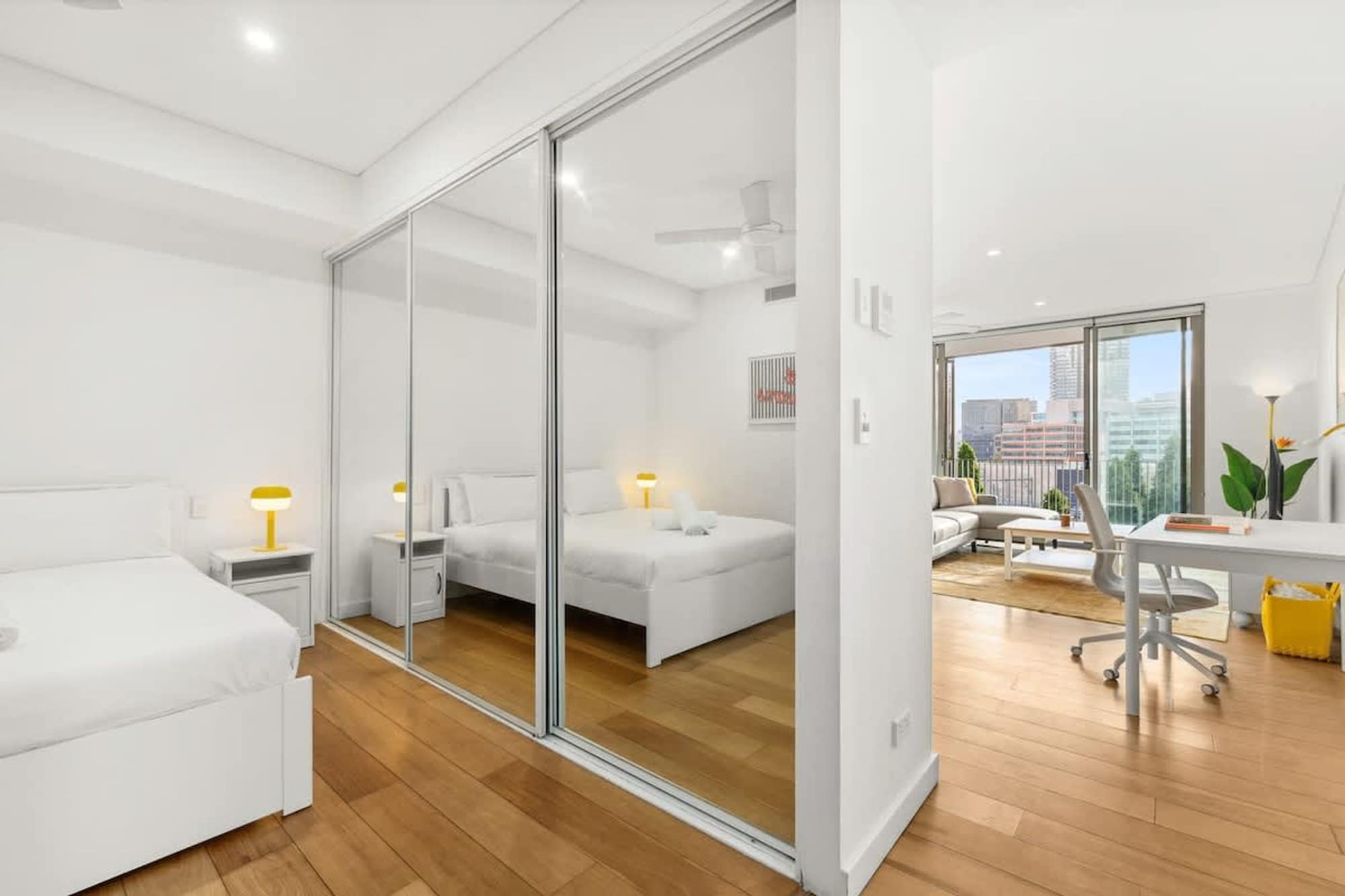 帶陽臺空調的中央明亮兩床房