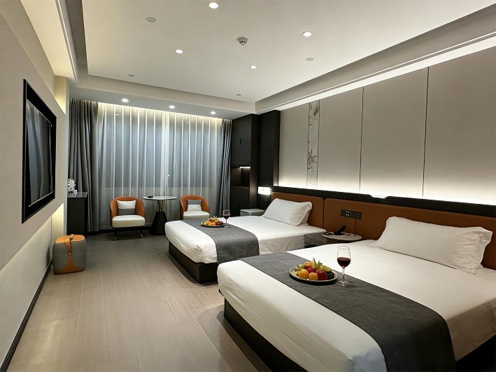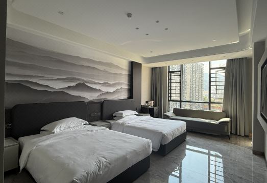 本店客房数量多间(含套房,亲子间,双人房,单人房,单双可调),配套九楼多人会议室,二楼中餐厅(多桌+多包厢)及餐饮,对标高端配置,品牌床架床垫体系,品牌卫浴,智能服务,智能服务,打造商务时尚新标杆,坐落在城步路幅最宽的白云大道中段,东眺三十六峯,紫气东来,背倚儒林世家,配套有7000平方的休闲花园,文化长廊,实乃休闲养生商务度假之首选。