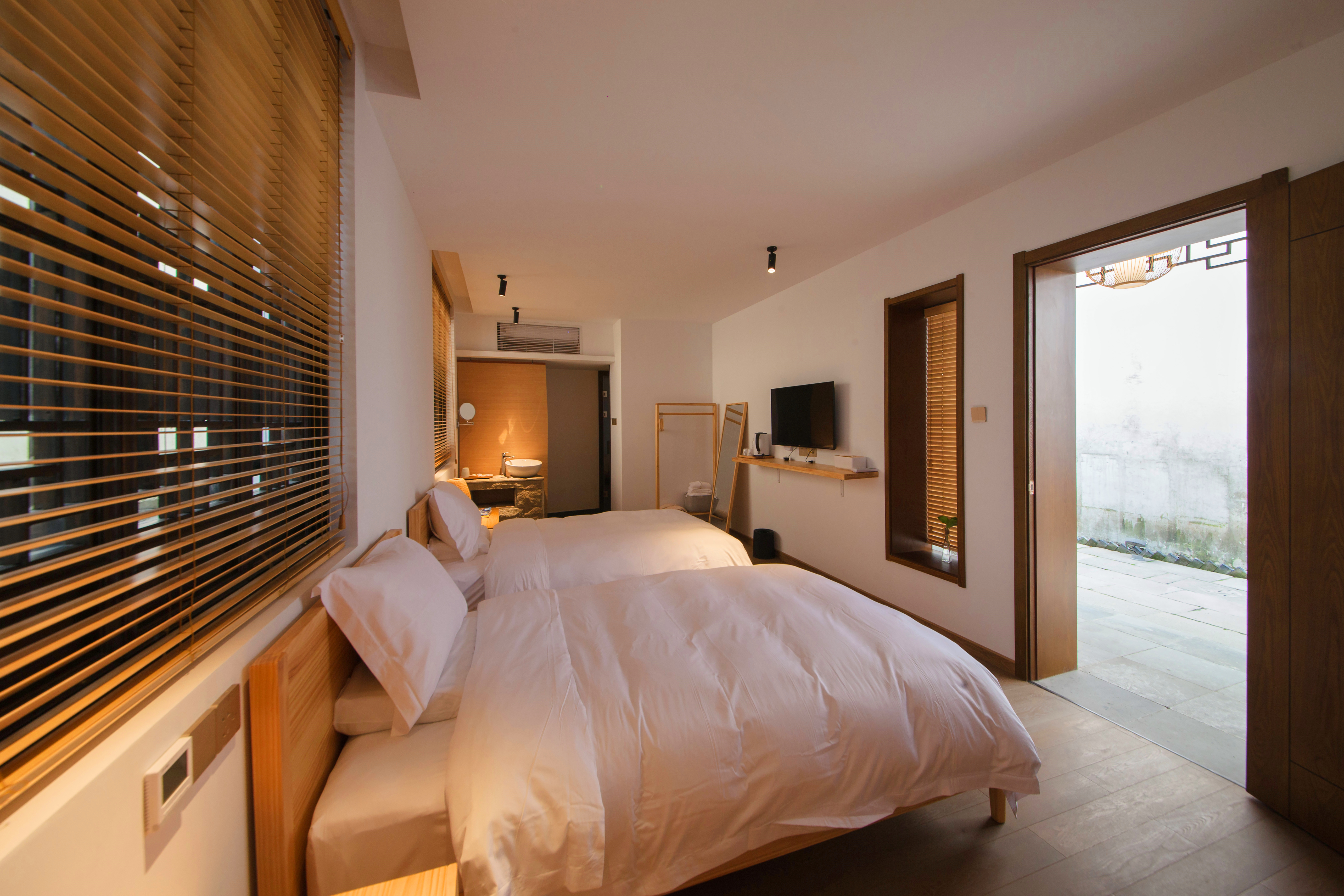 苏州筱驻人文度假酒店位于木渎古镇山塘街,近严家花园;周围餐饮、娱乐等生活配套齐全,出行便利。酒店开业一年荣获:2018年中国民宿榜50强,2018年度苏州市十佳旅游民宿,2018年度吴中区太湖十佳旅游民宿 ,2018年旅?城年度精品民宿奖。酒店是由传统的五进民居改造而成,作为文保单位,酒店的改造在当地园林古建工匠的配合下,历经四年多的时间,使用修旧如旧的工艺,较大限度地对老宅进行了修复与还原。酒店现有1个禅茶室,1个书吧和咖啡吧,5个大小不同的苏式院落,以及十余间客房。客房全都采用生态采暖系统,这种生态采暖膜释放的远红外线,具有杀菌功能,可以将房内的细菌、蟎虫全部灭杀,要比传统的取暖方式更为健康与环保。为了进一步提高舒适度,客房均有美国进口定制款金可儿床垫,西班牙的乐家洁具,泰国的素万高低按摩乳胶枕,洗漱用品使用的是美国C.O.毕格罗(C.O.Bigelow)品牌,连赠送的山泉水也是定制款。