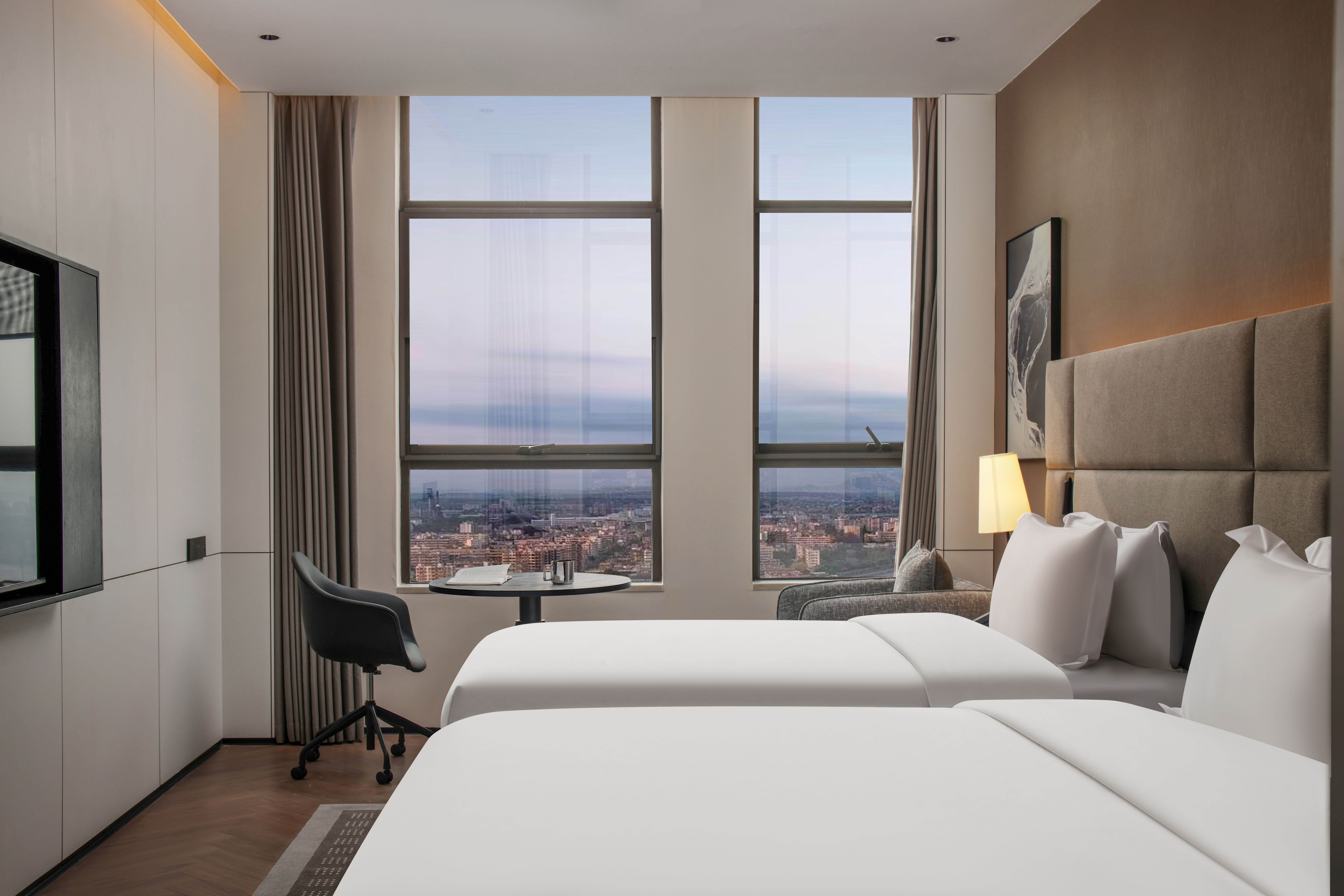 城景双床房-瑞典希丁安床垫-180°视野-智能客控