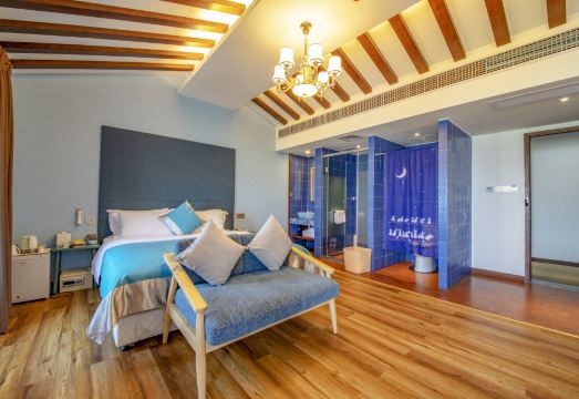 酒店是湖北润德实业集团2019年投巨资兴建的特色民宿主题文化精品酒店,位于中国历史文化名城、中国优秀旅游城市、世界长寿之乡湖北省钟祥市。酒店北邻世界文化遗产--国家5A级旅游景区明显陵,南依莫愁湖湿地生态公园,是“神秘钟祥、长寿之乡”精品旅游线路上的黄金节点。 酒店位于莫愁湖景区核心区域,临湖而建得于尽享一线莫愁湖湖景。酒店共建4层,配置观光电梯1部,占地面积约1亩,建筑面积1500余平米。酒店由台湾着名设计师精心打造,融合了当下主流消费羣体所关注的生活美学与情绪体验,取细节处做精特色,于大气间彰显魅力。酒店房型丰富,拥有风格不同的各种房间,分山景美式大床房、山景日式大床房、湖景榻榻米房、北欧标准房、地中海湖景房等多种房型,空间独特别致,装饰精致典雅。酒店大堂约200平米,并配备独立高级厨房,供宾客使用,让您在外也能享受自家般的烹饪体验! 酒店房间设施齐全,环境乾净整洁,所有用品均按照星级标准定制,外加细致温馨的公寓式服务,能给您带来完全不同于传统型酒店的入住体验,满足您商务、情侣、家庭出行等多种需求!