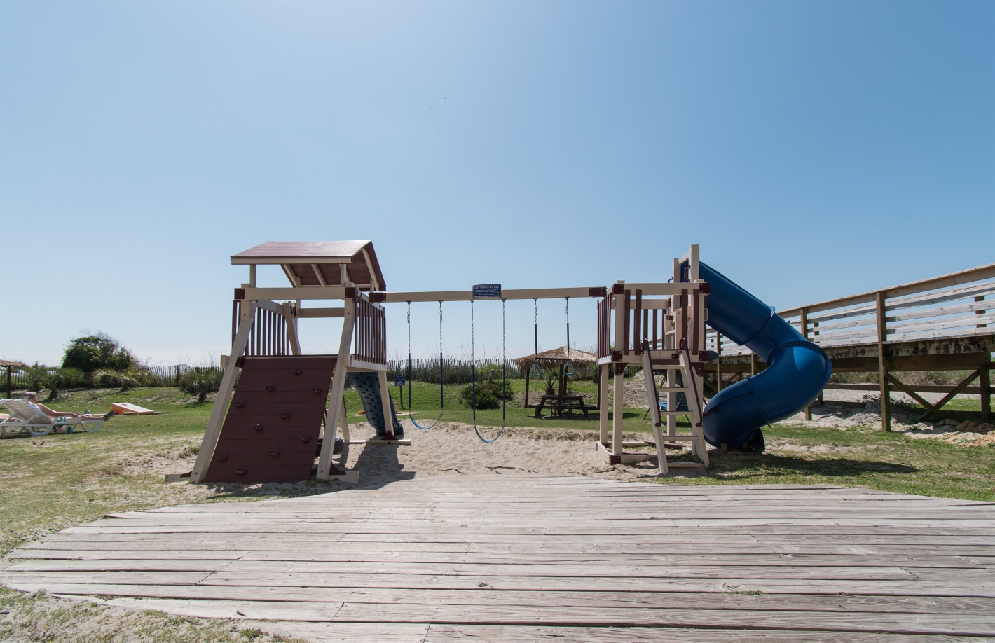 The kitchen is fully equipped with a refrigerator, range, microwave/range hood, and a dining room table for meals. The resort itself features an oceanfront pool deck with an outdoor pool and Jacuzzi, indoor water amenities such as a pool, lazy river, kiddie pools, and a Jacuzzi, as well as a fitness room and onsite parking.