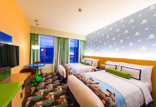 “玩具总动员酒店”的主题取材于迪士尼?皮克斯系列电影《玩具总动员》。而其设计也融入了被中国消费者广泛认可的元素,上海玩具总动员酒店外型类似数字8及“无限”符号。数字8在中国寓意了好运,而在酒店外墙上的云朵图案也同样含有“祥云”的吉祥寓意。