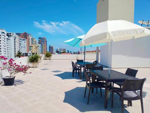 C&E Alojamientos , Apartamentos a Una Calle de la Playa & Malecón提供户外游泳池、露台以及带阳台和免费WiFi的空调住宿,距离圣洛伦佐海滩(San Lorenzo Beach)有几步路。内部提供私人停车位。