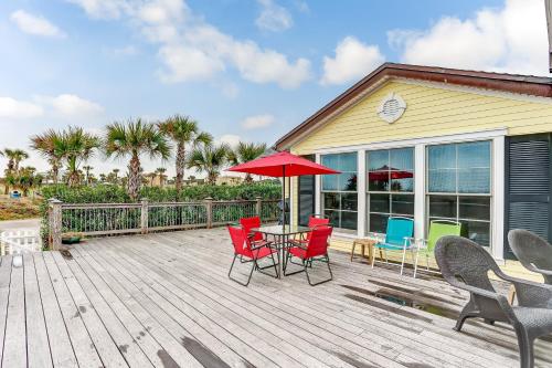 海洋大道宽敞的海滨小屋由红色遮阳篷