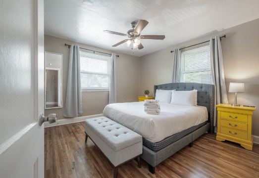 2 bedrooms & 1.5 bathrooms; this home was built to enjoy the tranquility of a quiet neighborhood and calming garden! Blazing WiFi; fully stocked kitchen (silverware drawer is within drawer), and dining for 6! Shared outdoor space includes washer and dryer, covered dining space and garden! Guests enjoy convenient in-town accommodations along with excellent amenities like blazing fast WiFi, garden, and a cute front porch to sip your coffee - all within 10 minutes to any Tampa attraction. Come see all that Tampa has to offer!
