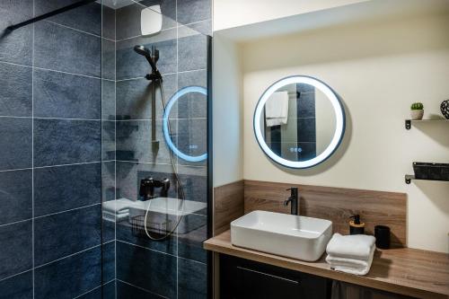 这家空调公寓配有1间卧室、起居室、带冰箱和咖啡机的设施齐全的厨房以及1间带淋浴设施和吹风机的浴室。这家公寓也为客人提供1间浴室。