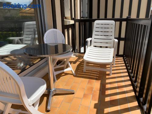 Cosy T2 terrasse sud - Centre Deauville et Hippodrome享有花园景,配备露台和阳台,距离特鲁维尔海滩(Trouville Beach)约有1.7公里。这家住宿坐落于一栋建造于1990年的建筑内,提供免费WiFi,距离特威维尔道维尔SNCF火车站有5分钟步行路程,距离莫尼港有800米。