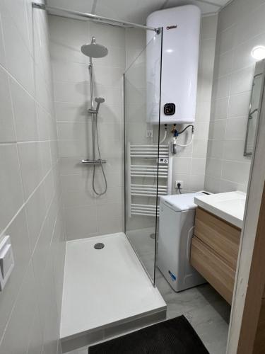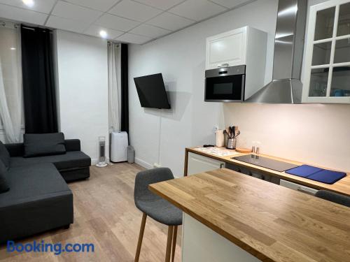 这家公寓提供1间卧室、带冰箱和洗碗机的厨房以及1间带淋浴设施、吹风机和洗衣机的浴室。这家公寓也配备休息区和1间浴室。