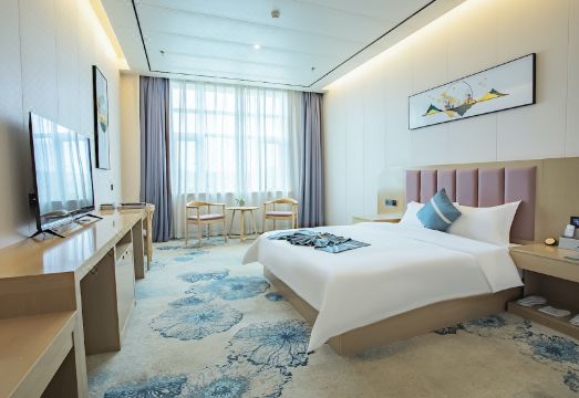 【洮河一线景】石缘福大酒店位於临洮滨河东路中段,是一家集餐饮住宿、会议接待、大型宴请以及休闲娱乐、景区为一体的综合性商旅度假酒店。酒店与黄河支流洮河隔路对望,在酒店房间里就可以欣赏到洮河景与山景相依相融的水墨画卷。酒店拥有新中式风格房间,包括大床房、双床、套房等多种房型,可满足商旅、度假、亲子、婚宴、情侣等多元住宿需求,是阁下到临洮差旅的理想之选。【石文化博物馆】店内有本地文旅部门主推的3A级景区临洮洮河石文化博物馆可免费供住客参观,馆内陈列有上千块来自祖国各地山河大川的奇石异石,让阁下一馆之内便可见识大自然的鬼斧神工。石文化特色也是酒店的主题和特色之一,给您的差旅或度假之旅增添异样的色彩和趣味。【美食酒店】酒店餐饮部是临洮地区综合饮食的头部品牌,囊括了湘菜、川菜、粤菜以及本地特色菜等多种美食口味,长久以来以4D厨政管理的理念确保食品的安全、绿色、高品质,并设有近30个包厢和可容纳数几百人用餐的无柱宴会厅,是您商务宴请、私人聚会、品嚐美食饕餮的选择。【设施配套】有奇石博物馆、书画室、会议室、茶室等多种配套,也可接待团队、会议等业务。酒店周边就是美食酒吧一条街,您可以随时感受这座兰州南小城的人间烟火气。【新中式风格】房间整体采用新中式装修风格,房间宽敞明亮融入部分智能功能,让旅居变得更加轻松和惬意。