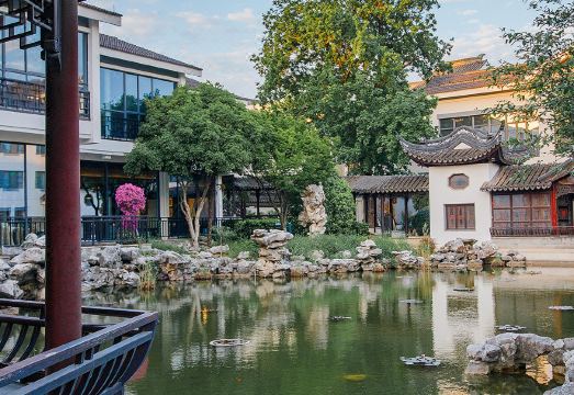 苏州南园宾馆以传统苏州园林建筑为特色,传统风格与时尚情调在南园无缝连接;设计以“花园+家园”为理念,园林别墅式风格,苏州南园宾馆房间设计以现代、时尚、古典相结合。
