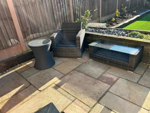 这家度假屋配有露台、1间卧室、1间浴室、设施齐全的厨房、平板电视和热水浴池。这家度假屋也为客人提供1间浴室。