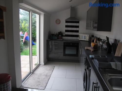 这家度假屋提供庭院,享有花园景,配有3间卧室、起居室、平板电视、带冰箱和烤箱的设施齐全的厨房以及1间带淋浴设施的浴室。这家度假屋还提供休息区、洗衣机以及1间带吹风机的浴室。