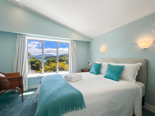 Waterfront 2-Bedroom Harbour View Apartment享有山景,提供露台,距离阿卡罗阿海滩(Akaroa Beach)约有3分钟步行路程。这家海滨住宿的客人可以使用庭院、免费私人停车位和免费WiFi。