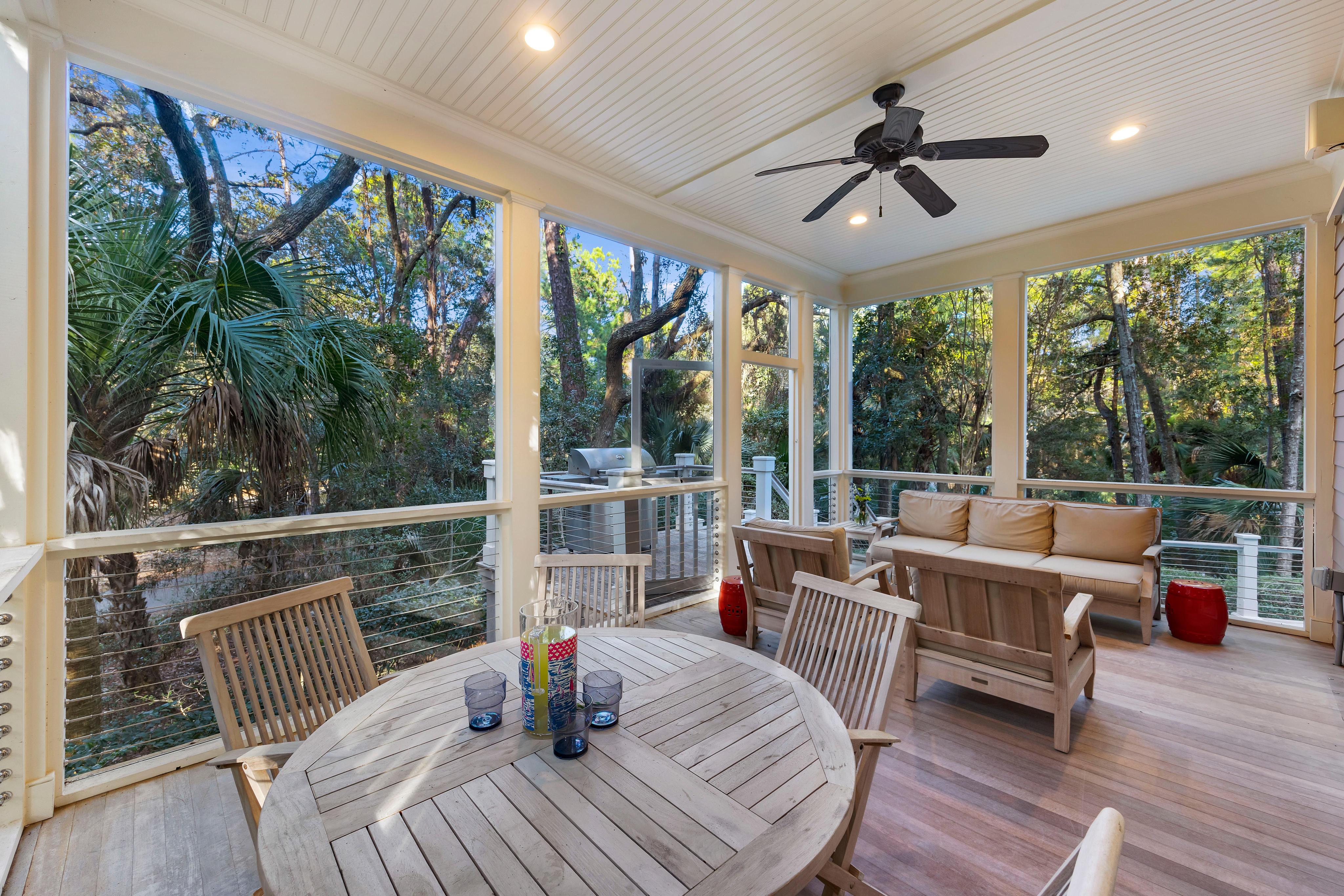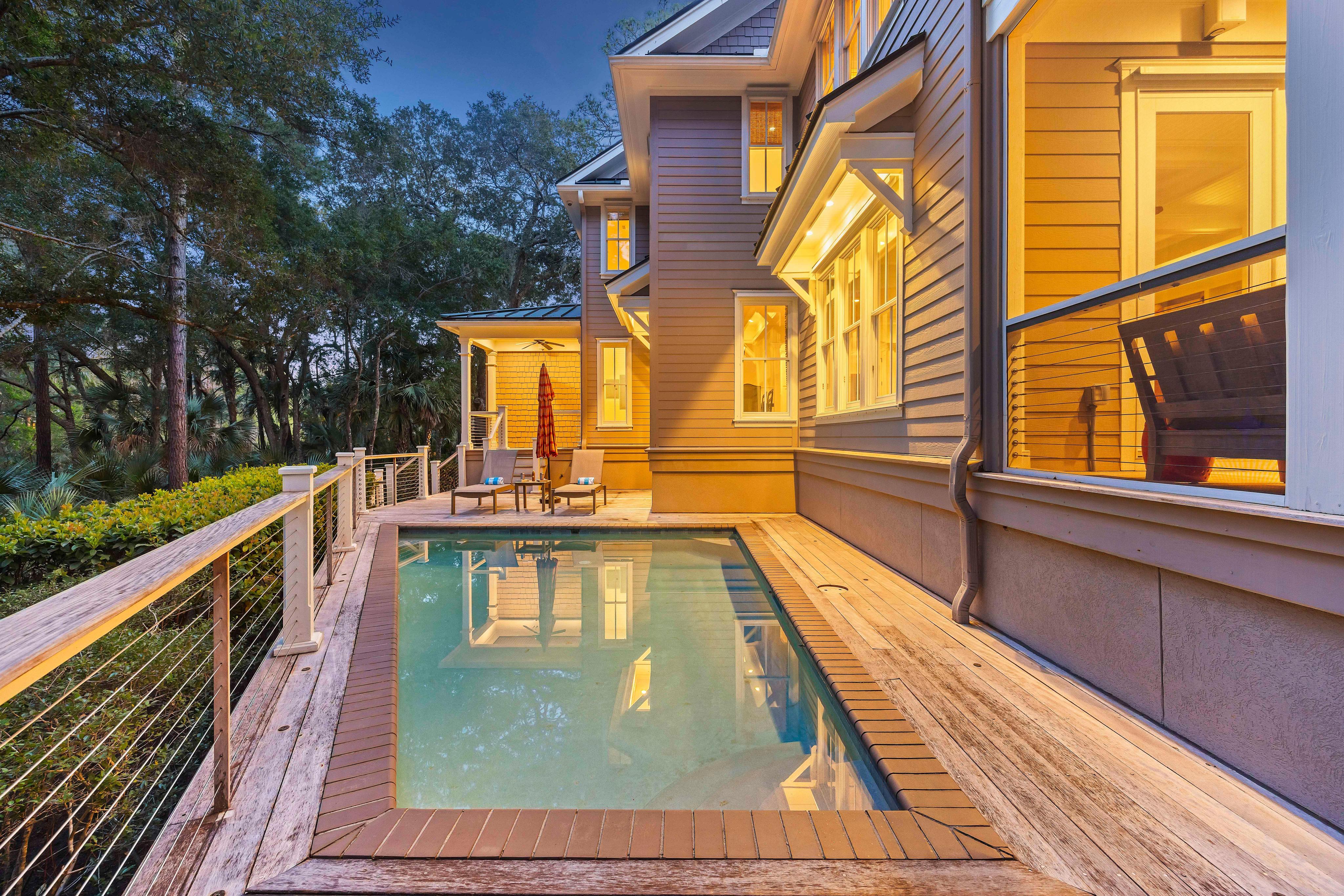 It's the outdoor space that really makes this home special. Enjoy evening cocktails or alfresco dining on the expansive screened porch. Lounge in the sun with a good book on the pool deck. Take a dip in the large saltwater pool after a long day at the beach. Simply relish in the beautiful surroundings of the Lowcountry, filled with lush maritime plants and trees and the soothing sounds of local birds and wildlife. And for a little added fun, the property does have a ping pong table and corn hole available guest use!