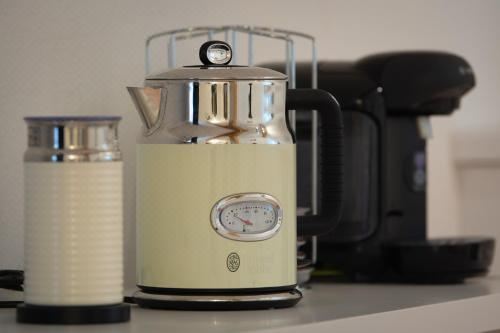 这家公寓配有2间卧室、起居室、带冰箱和咖啡机的设施齐全的厨房以及1间带淋浴设施和吹风机的浴室。这家公寓也提供1间浴室。