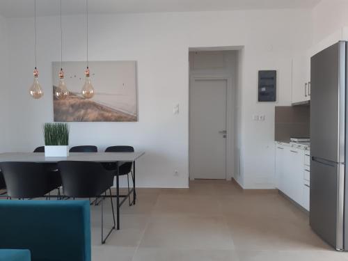 这家空调公寓配有2间卧室、起居室、带冰箱和咖啡机的设施齐全的厨房以及1间带淋浴设施和吹风机的浴室。这家公寓也提供休息区和1间浴室。