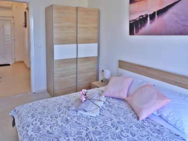 In the settlement Pisak at Seline and close to the pebble beach is this private house with two well furnished holiday apartments situated. In the spacious apartments, which have a nice terrace or balcony, up to 9 persons find the right accommodation for a relaxing holiday. The beautiful garden offers plenty of room to play and a barbecue area for cozy evenings. The house is also ideal for 2 families or groups traveling together.