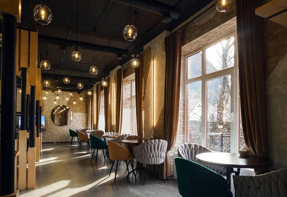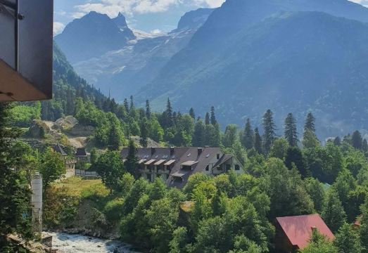 A hotel in Dombay village with direct access to the lifts of the 1636 m cable car. The Devil's Mill Waterfall is 1.8 km from the hotel, while the Mountaineering Cemetery is 3 km away. The city of Taberda is 19 km away, while Mineralnye Vody Airport is 217 km away.