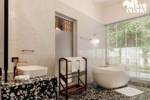 这家空调别墅配有4间卧室、起居室、带冰箱和电热水壶的设施齐全的厨房以及4间带坐浴盆和免费洗浴用品的浴室。这家别墅还提供平板电视、休息区、洗衣机以及4间带浴缸的浴室。
