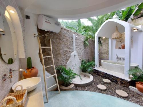 Oma Watu Dome Villas位于东爪哇省的巴芝丹,配有阳台,享有山景。这家住宿距离瓦图卡隆海滩(Watu Karung Beach)有4分钟步行路程,提供露台和免费私人停车位。