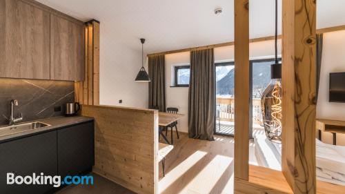 这家公寓享有山景,为客人提供阳台、休息区、卫星频道平板电视、带冰箱和洗碗机的设施齐全的小厨房以及带坐浴盆和免费洗浴用品的私人浴室。住宿还配备微波炉和炉灶以及咖啡机和电热水壶。